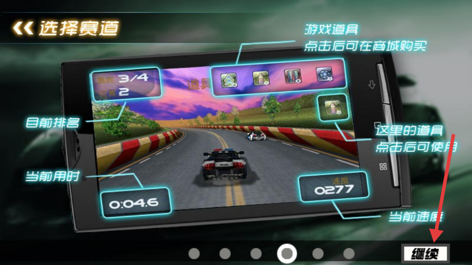 1、通过重力感应控制赛车方向,左右倾斜设备实现精准过弯。
