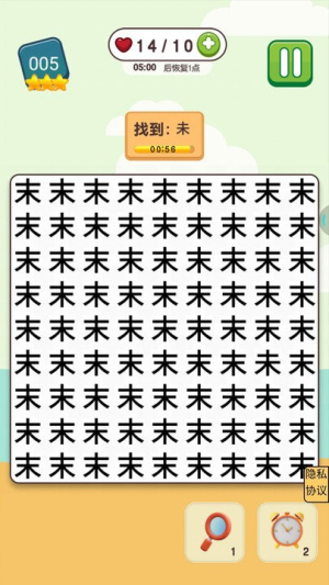 4、游戏通过独特的汉字找茬玩法,让玩家在轻松愉快的休闲娱乐过程中自然接触和熟悉更多汉字,实现寓教于乐的效果。