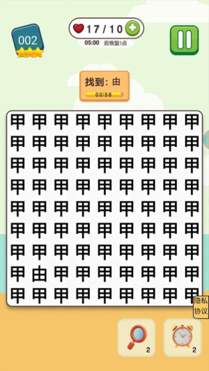 3、游戏特别注重玩家的眼力分析和逻辑判断能力,要求玩家通过细致入微的观察发现汉字间的细微差别,充分展现个人的观察分析才能。