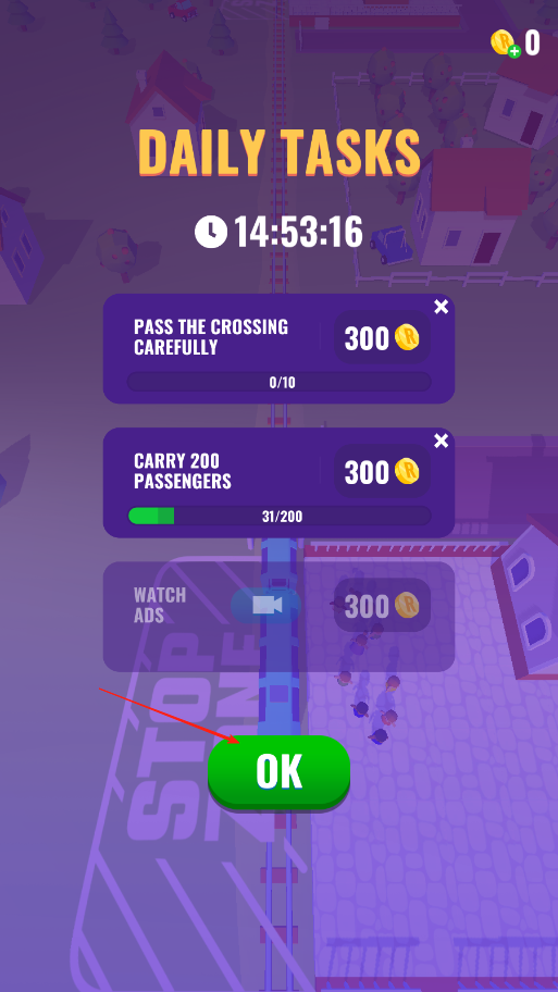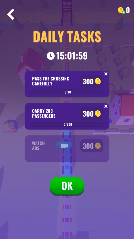 3、安全通过路口、搭载指定数量乘客等,达成后点击OK领取奖励,用奖励解锁新内容。