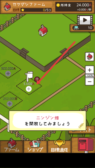 2、在农场界面,找到标有5000A的虚线地块并点击,触发解锁洋葱田的提示,准备消耗金币拓展农场土地,为种植新作物做准备。