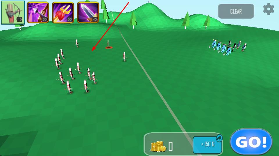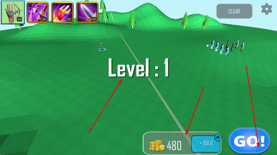 1、开局查看金币数,点击左上角兵种图标消耗金币部署单位,依特性与关卡需求规划阵容,为交锋备基础确认部署后点右下角GO按钮。