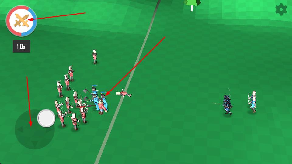 3、战斗时左侧按钮控兵种移动,左上角倍数按钮调战斗速度,借操作辅助己方突破防线,就可以正式开始游戏。