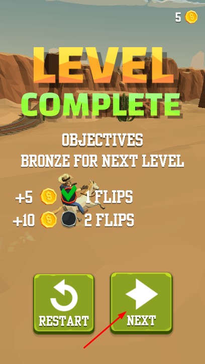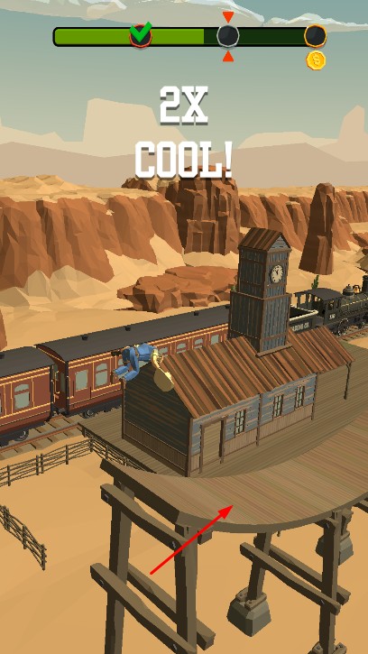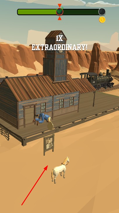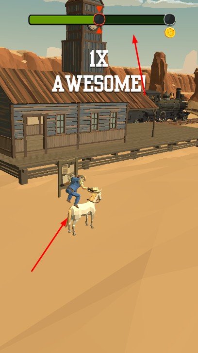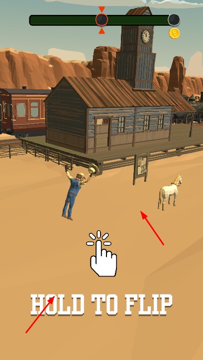 2、长按HOLD TO FLIP,让牛仔和白马在空中完成翻转动作,注意上方能量条,保持操作节奏。