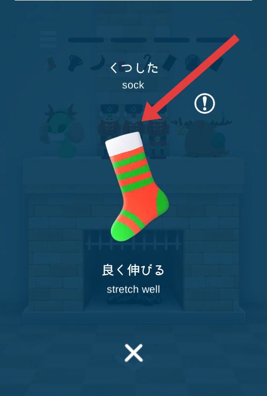 2、在其他房间找到新的物品,确认标注くつしたsock的彩条袜子,结合良く伸びるstretch well的描述。