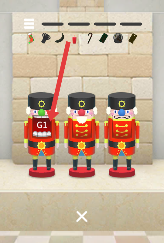 3、点击胡桃夹子士兵会出现标有G1的关键线索,需要继续点击旁边两个胡桃夹子士兵,记住线索帮助后续解谜。