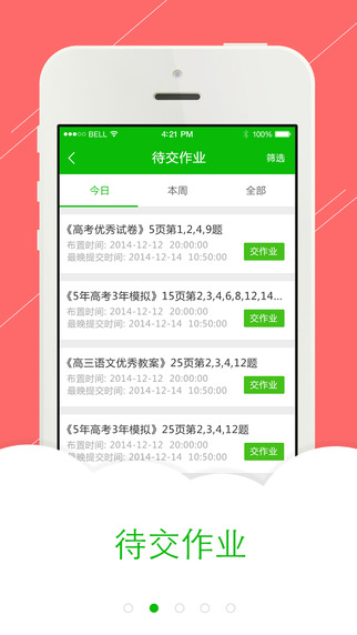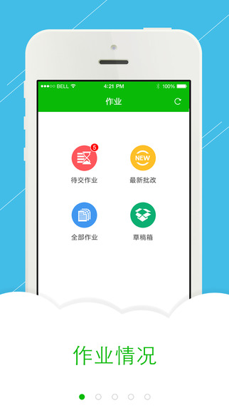 可以查看待交作业、最新批改,全部作业和草稿箱。让你随时随地知道你需要提交的作业和老师的最新批改。