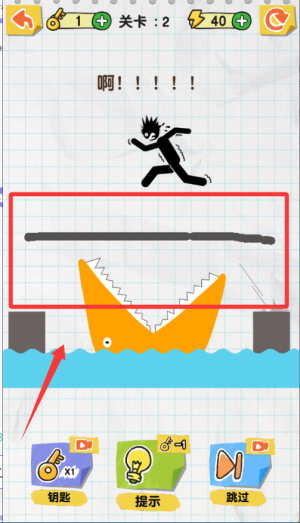 2、可以画个盾牌挡伤害,或者画个斜坡让他滑走。线条位置要准,太短没用,太长可能挡住路。