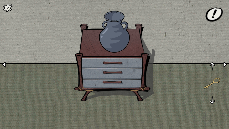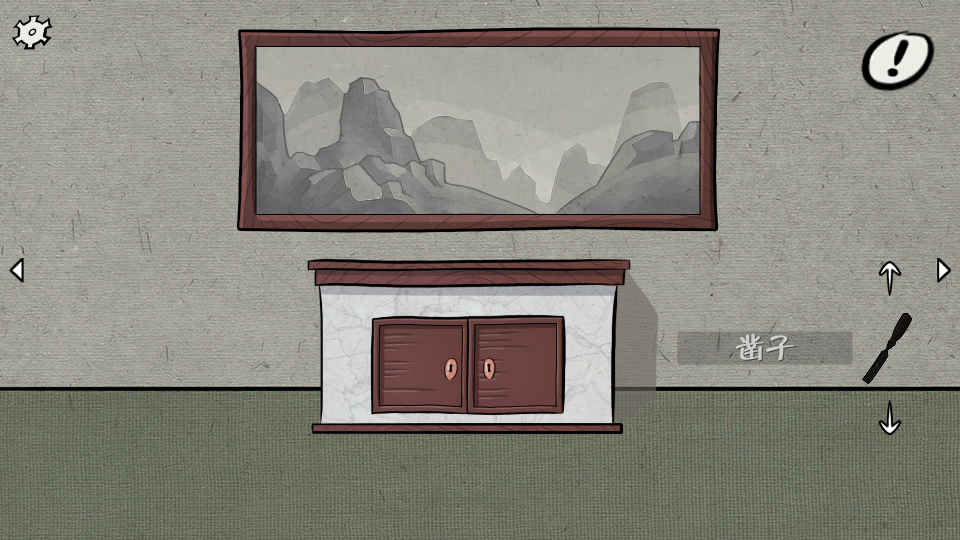 1. 进入房间场景,点击山水挂画、柜子、道具凿子互动,收集凿子,尝试用其敲击物件如柜子找线索。