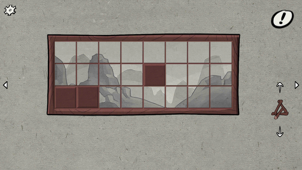2. 遇到挂画方格谜题,观察空缺位置,调整方格移动拖拽,拼合完整山水图,解锁内容道具或者通道。