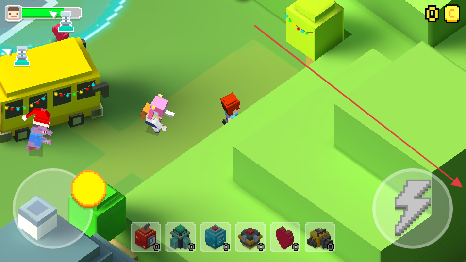 3.推进时,遭遇敌人如戴圣诞帽角色,选道具栏对应武器闪电图标,点击右侧的攻击键来释放。