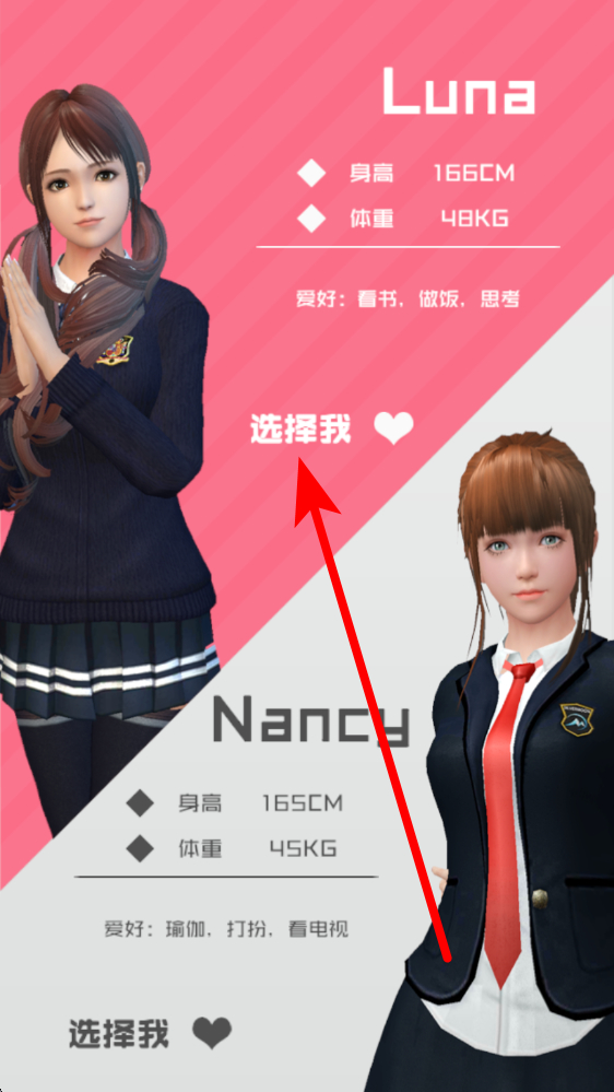 1、初始游戏界面选角色,如Luna或Nancy,点击对应选择按钮,确定后进入家园场景,按指引操作,可移动探索,与场景物品互动。