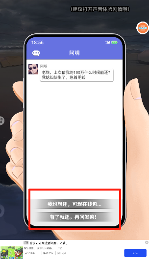 4、在下方对话中选一句,即可与角色对话。