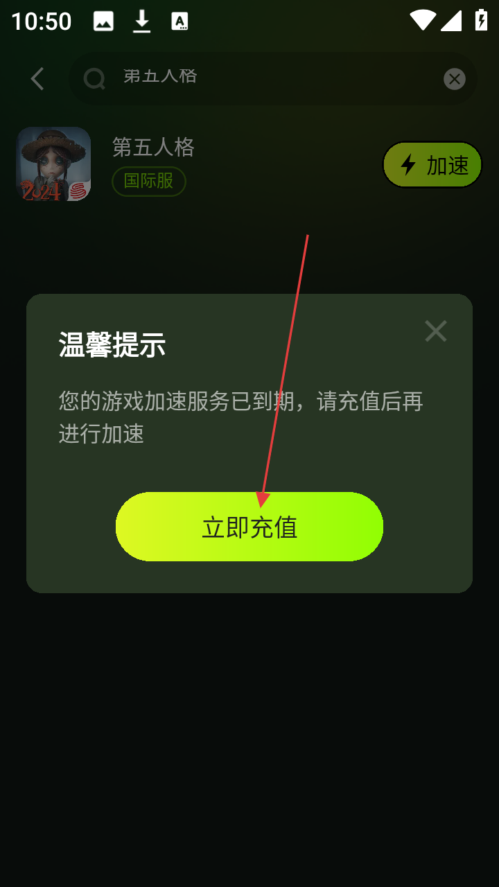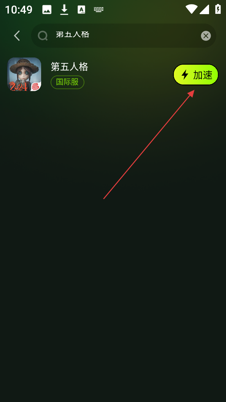 3、在搜索结果页面点击目标游戏加速,启动游戏加速服务。