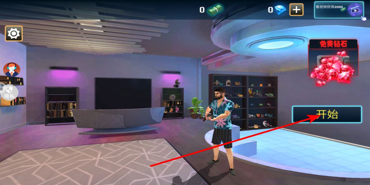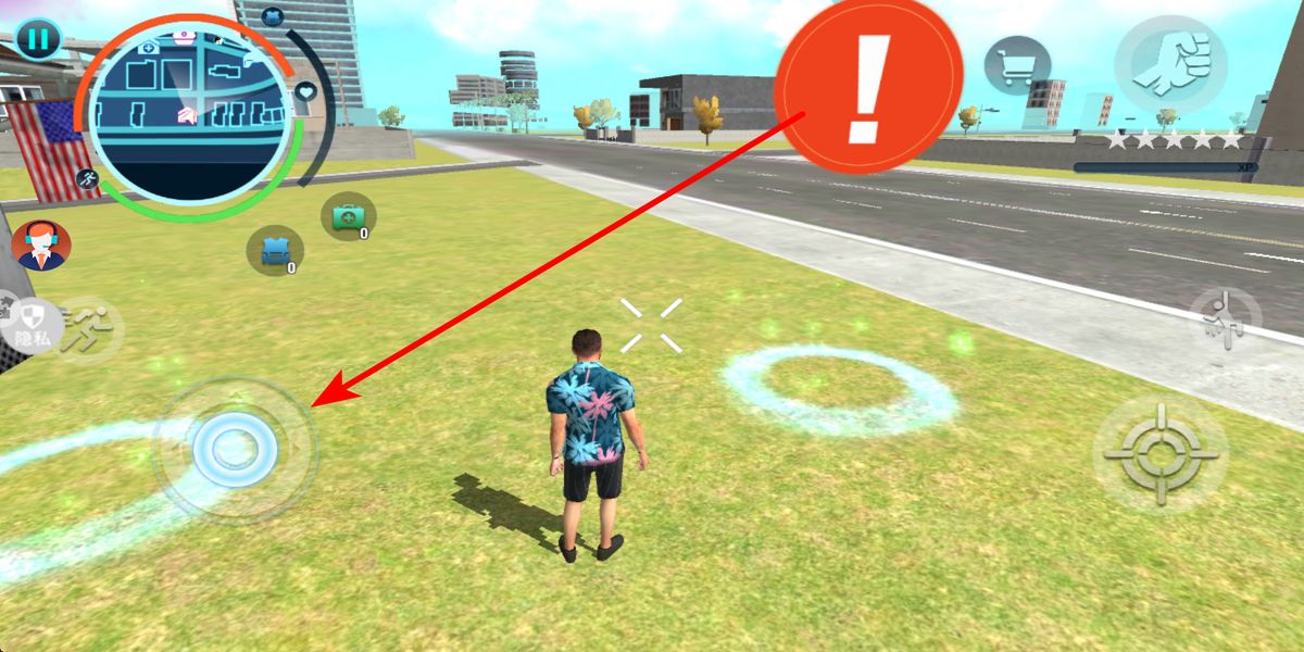 1、进入游戏,在室内点击开始,进入城市场景,操控左侧移动摇杆,控制角色在草地、街道行动,熟悉操作,规划探索路线,为后续任务做准备。