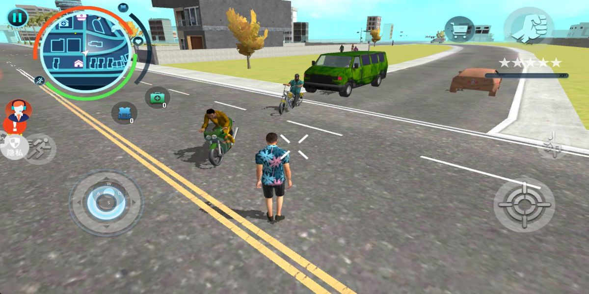 1、地图探索推进:进入游戏后,操控角色在超大地图中自由移动,探索街道建筑等场景,留意角落互动点,收集道具触发任务,逐步解锁地图区域,拓展冒险范围。
