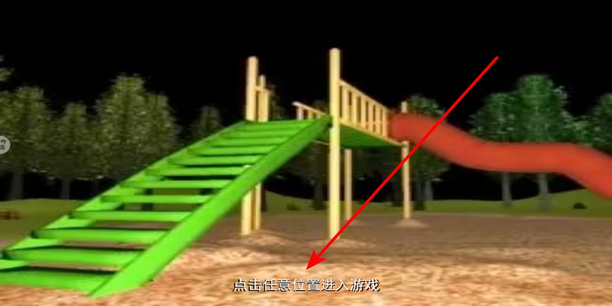 1、初始界面点击任意位置进入,跳转后选开始游戏,进入森林滑梯场景,提前熟悉界面,准备迎接后续惊悚探索,开启冒险流程。
