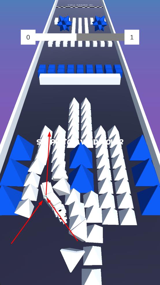 1、操控白色滑块启动,观察赛道障碍布局,规划移动路径避蓝色星形障碍。