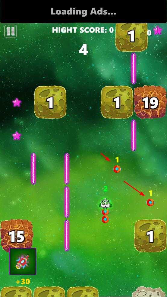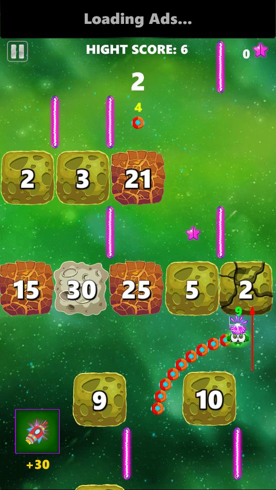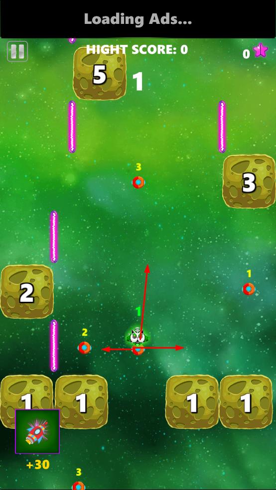 3、避开紫色障碍,规划移动路径,持续撞击石块刷新最高得分。