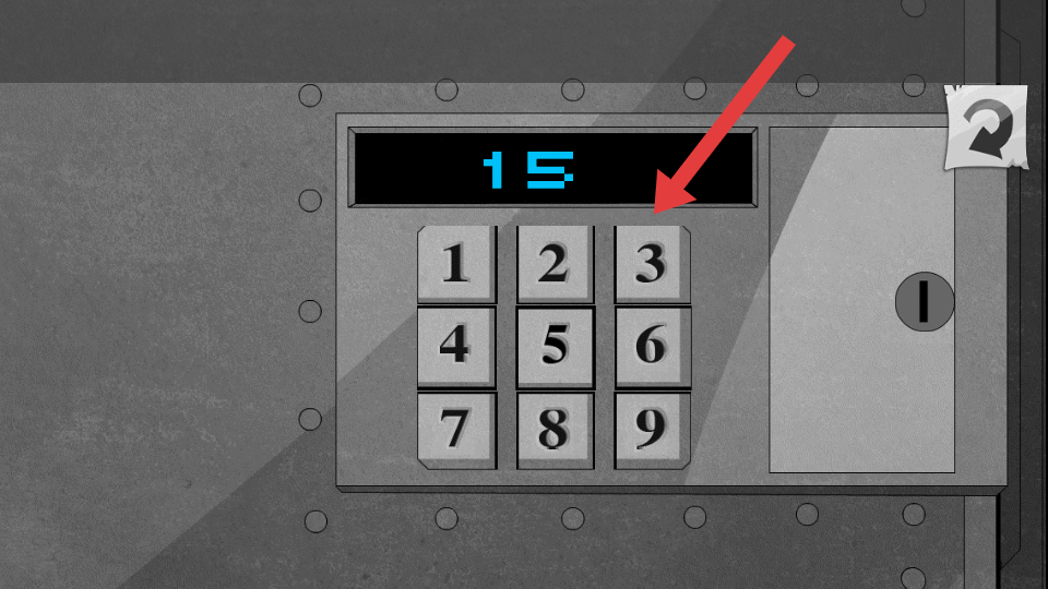 3、面对密码锁,依据提示屏幕显示输入的数字,数字键盘输入对应密码,解锁设备,完成关键步骤。