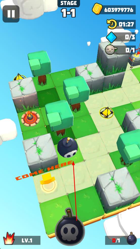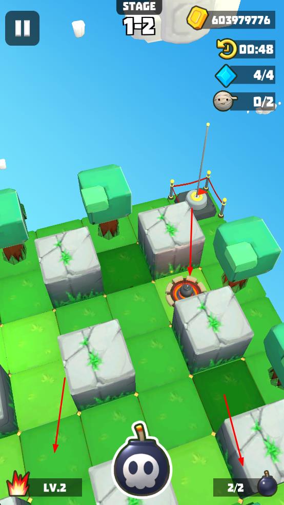 3、解开谜题推进冒险:每一关的核心目标是解开对应谜题,玩家需仔细观察关卡细节,梳理障碍、陷阱与目标点的关联,通过合理放置炸弹、规划移动路线逐步破解谜题。