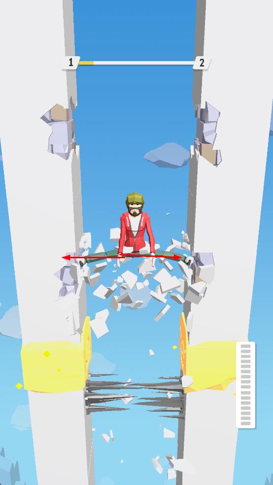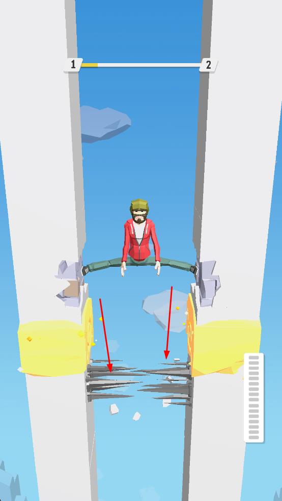 3、接近底部尖刺障碍时,再次撑开双腿破坏,完成关卡挑战。