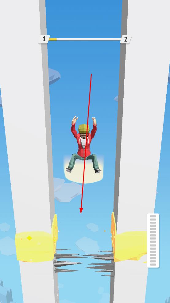 1、操控角色向两侧撑开双腿,破坏中间建筑障碍,启动下落流程。