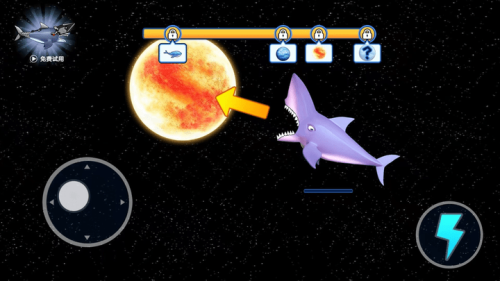 4、玩家控制小鲨鱼从吃掉小鱼开始,不断增加体型,直至吞噬地球、星空,最终与宇宙霸主决战并击败它获得行星吞噬者名号。