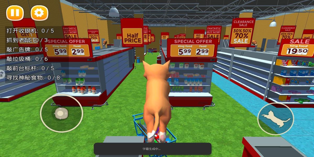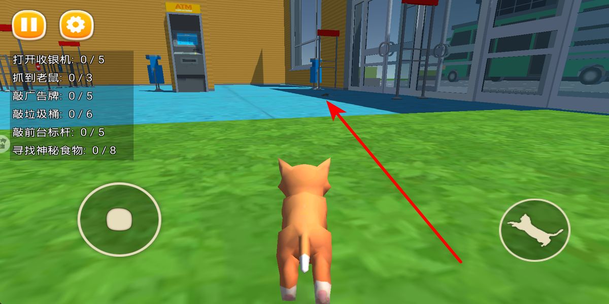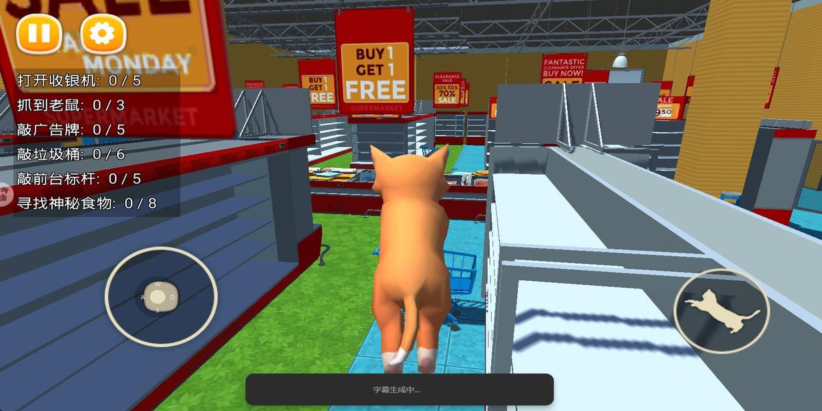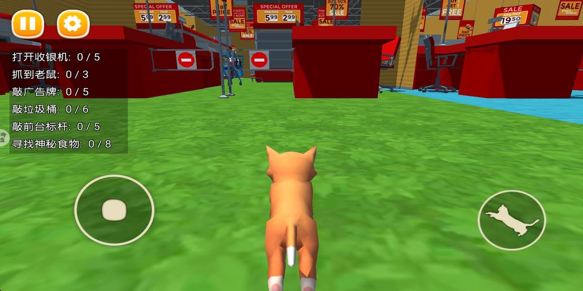 2、在关卡场景,左侧显示任务列表如打开收银机、抓到老鼠等,操控猫咪移动,按指引前往目标区域,执行任务动作,推进进度。