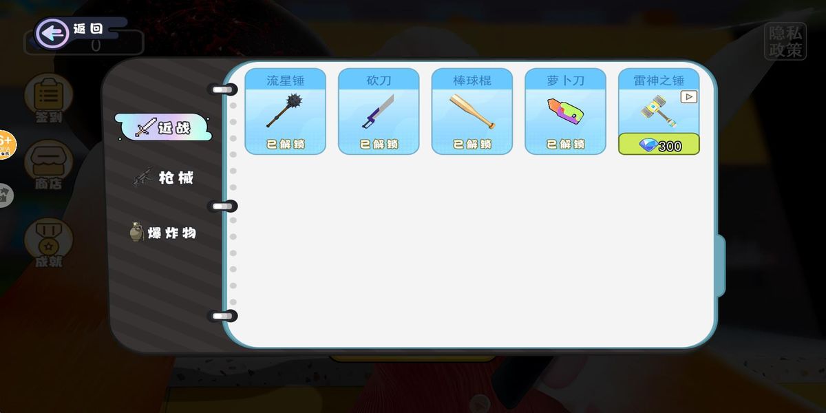1、进入游戏点击开始游戏,正式开启冒险,提前熟悉界面功能,签到、商店等可后续探索,优先聚焦搞破坏核心玩法,快速进入状态。