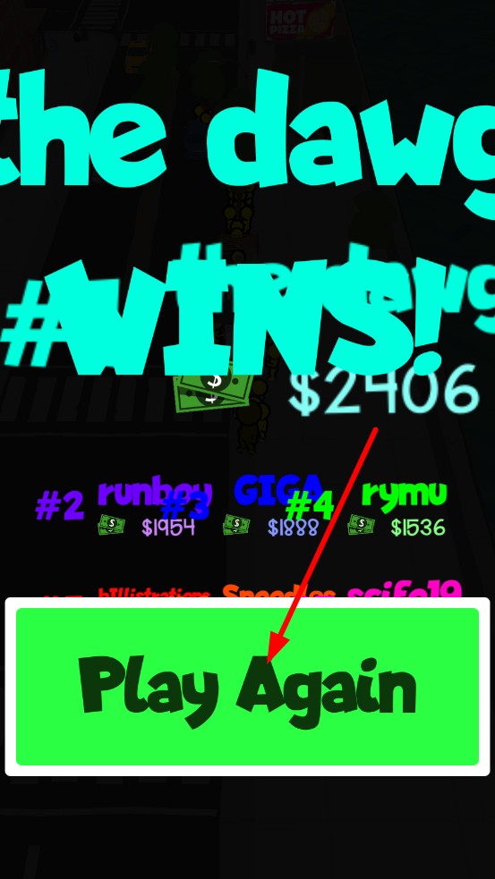 3、倒计时结束后,根据队伍积累的金币判定排名,点击lay Again开启新局,金币可解锁新角色皮肤。