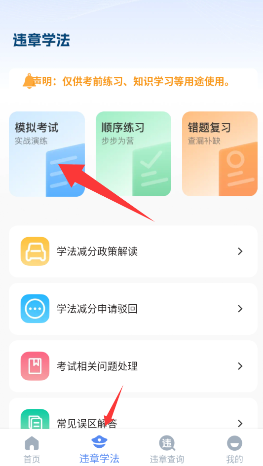 1、"学法减分"模块包含最新题库和模拟考试系统,智能错题本自动记录薄弱环节,针对性强化训练,学习进度多端同步,碎片时间也能高效备考。