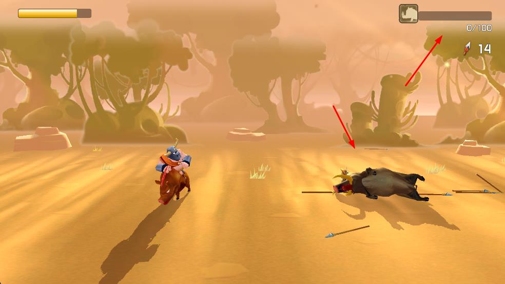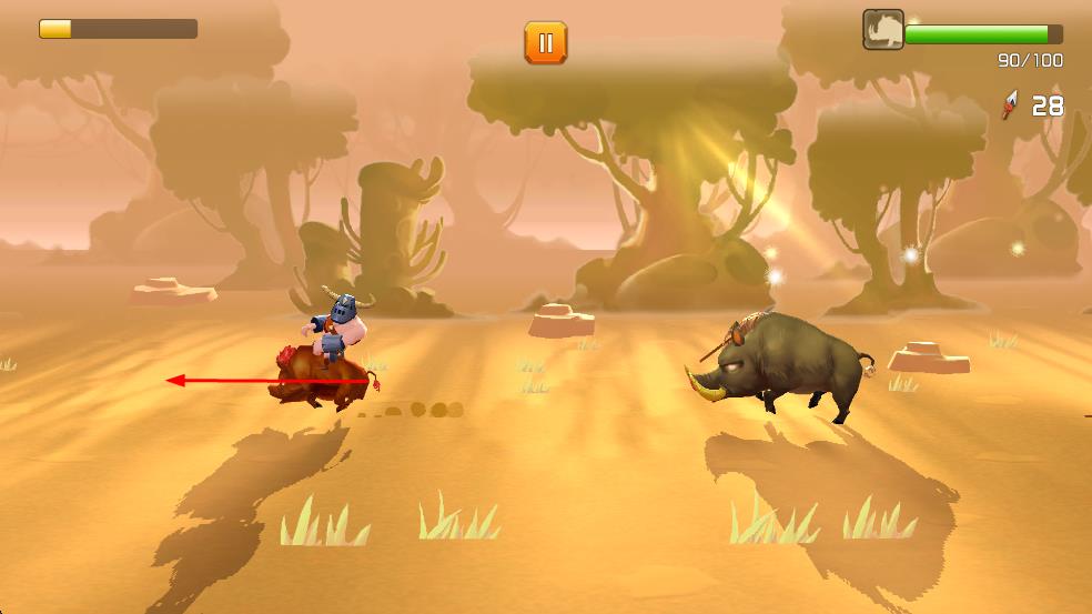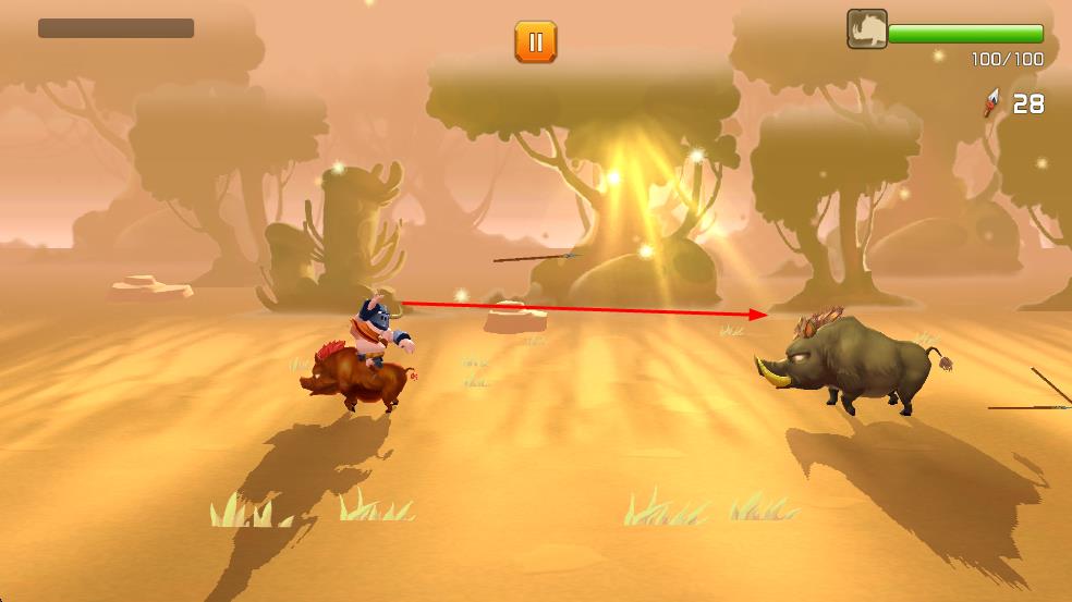 1、操控骑乘野猪的角色,瞄准前方野怪发起攻击。