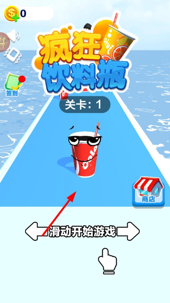 1、进入游戏后,在关卡开始前选择适配赛道的饮料瓶,如碳酸饮料瓶适合跳跃,玻璃瓶适合平稳滚动,点击开始后饮料瓶自动前进,准备通过滑动控制方向。