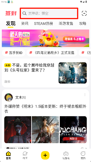 2、进入软件后,点击上方搜索框,搜索你想要的游戏。