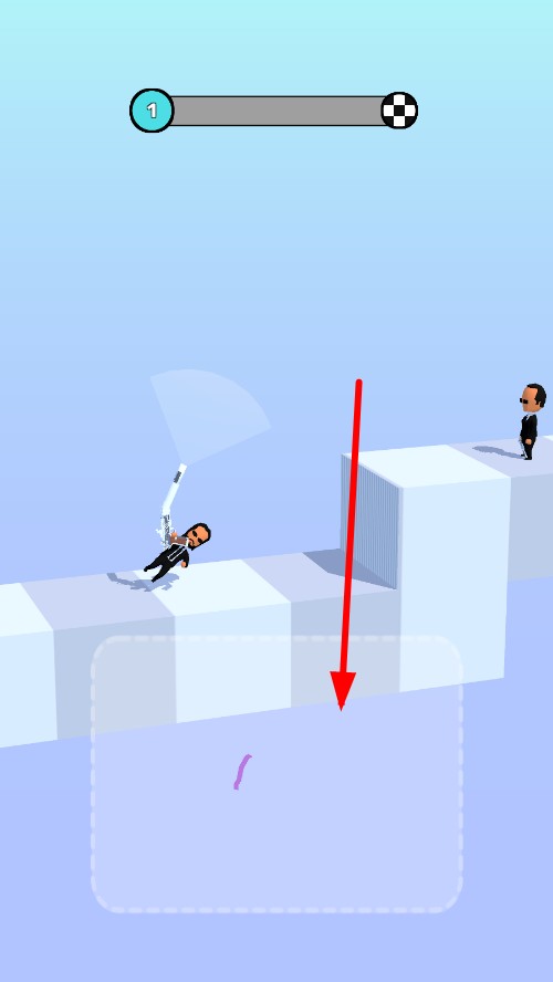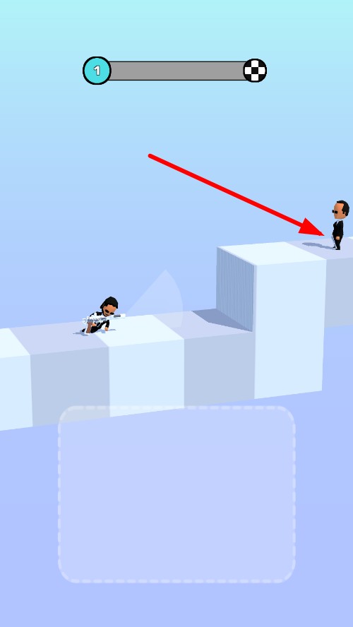 1、进入关卡后,滑动屏幕规划手枪轨迹,将枪手带上和对手的同一平台,和对手开启对决。