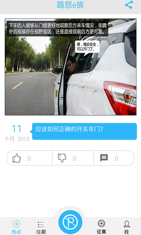 路怒e族app是一款专门针对生活中车辆乱行、违章打造的手机应用软件,应用能够给路怒的朋友们带来各种支招,让其开车在路上保持愉悦心情。应用中还可以随手拍出不文明的行车照片,有需要的用户赶紧下载使用吧~