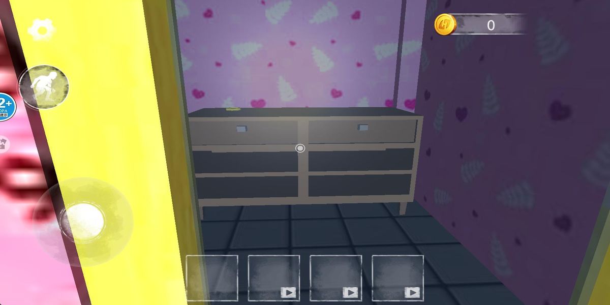 1、进入游戏,点击开始游戏,在粉紫色初始房间停留,快速扫视家具、物品分布,记住关键位置,为后续躲避与探索筑牢基础。