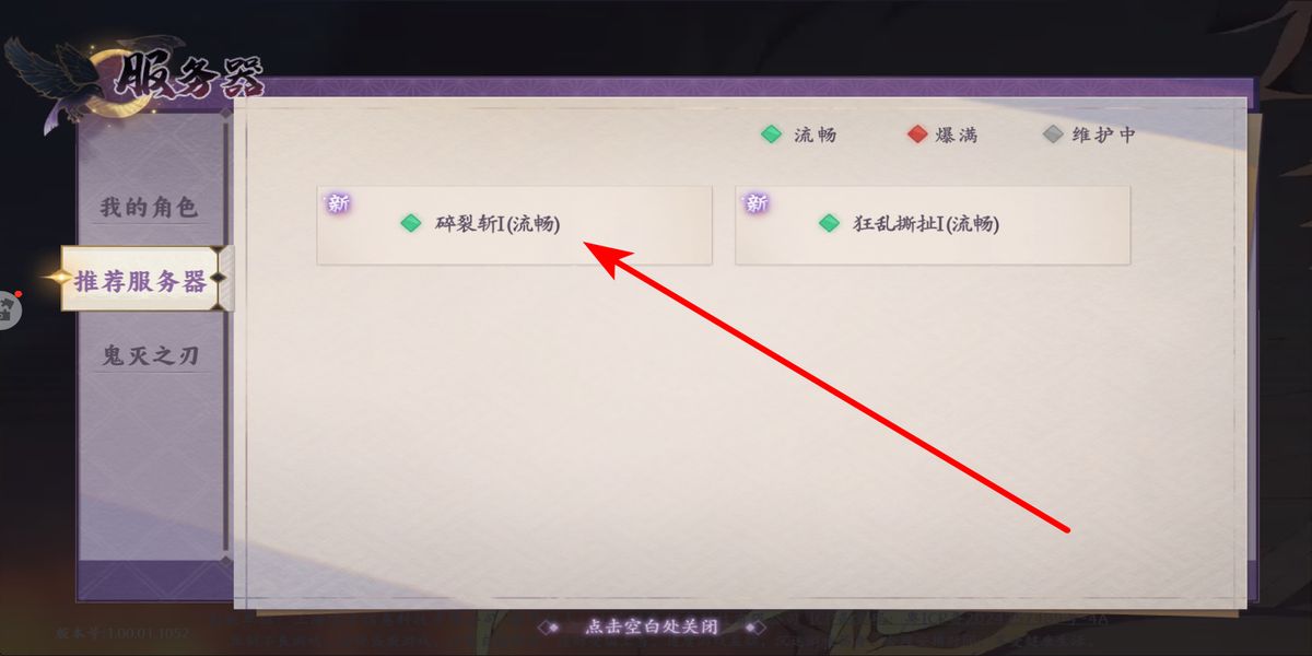 1、在游戏的登录界面,勾选同意用户协议,点击进入游戏,跳转至服务器的选择页,选碎裂斩I等推荐服务器,确定进入游戏。