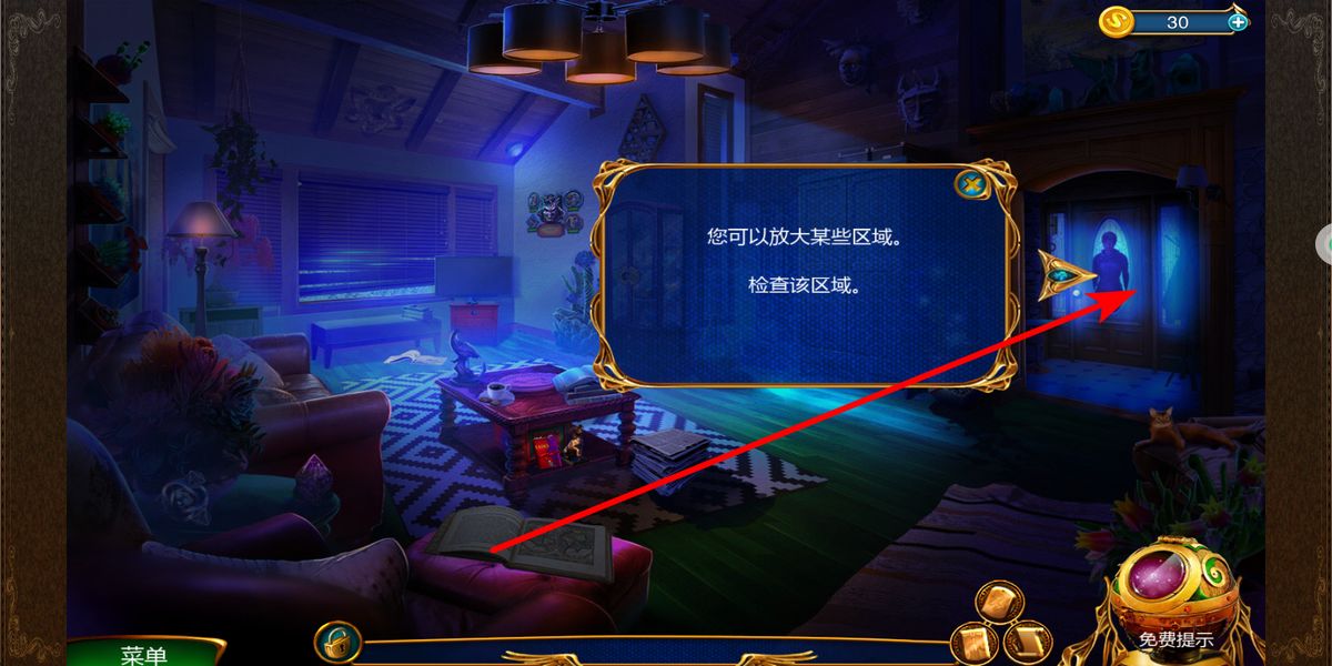 1、点击开始冒险进入游戏,面对神秘场景,留意提示,按指引放大特定区域,仔细检查,寻找如光影异常、物品摆放蹊跷处,挖掘初始线索。