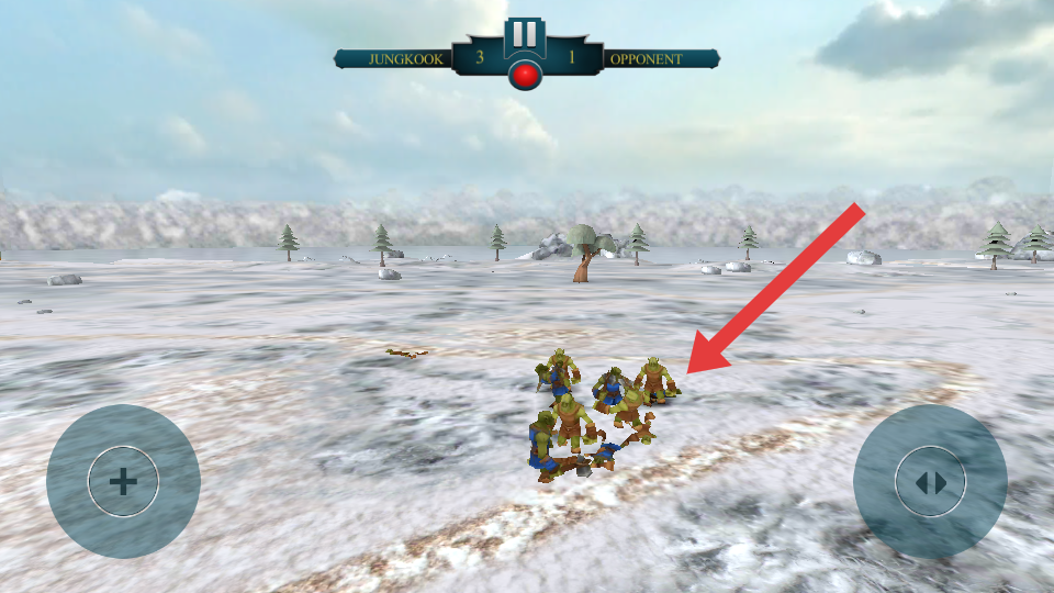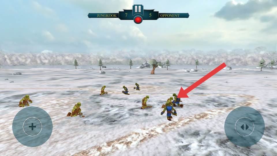 1、开局观察上方兵力值JUNGKOOK vs OPPONENT,点击左下角+按钮,快速补充己方小兵,壮大队伍。