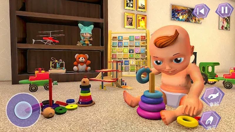 1、真实育儿场景:还原婴儿房、客厅、浴室等生活场景,道具包含奶瓶、尿布、婴儿床等育儿用品,护理流程贴近现实,让玩家感受照顾宝宝的真实日常。