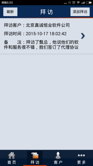 6、添加拜访记录功能;