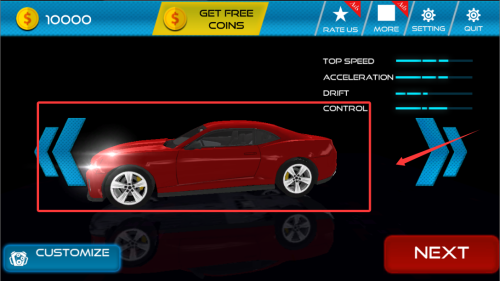 1、进入车库界面浏览20余款精心建模的跑车,根据性能参数挑选心仪座驾。