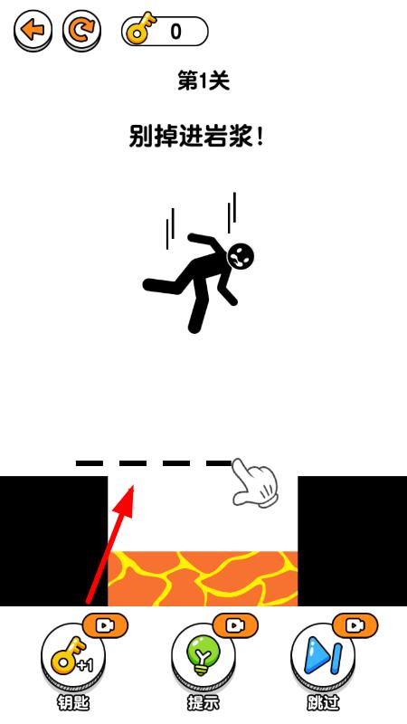 1、进入关卡后,观察火柴人所处的环境与面临的危险,如陷阱、敌人、悬崖等,用手指在屏幕上画出简单线条,尝试搭建基础防护或通行路径。