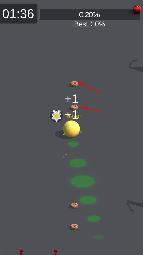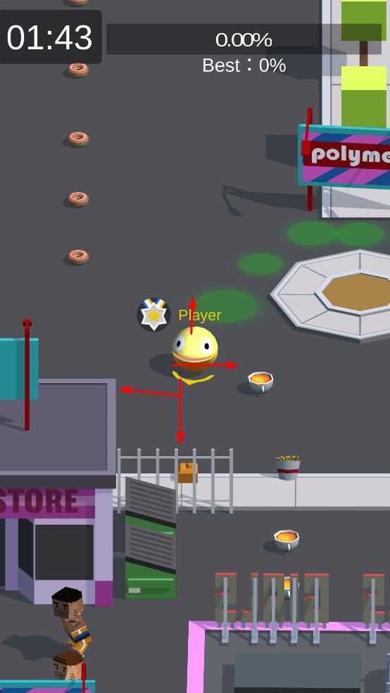 1、进入游戏,操控黄色角色在城市移动,收集沿途甜甜圈,开启成长进程。