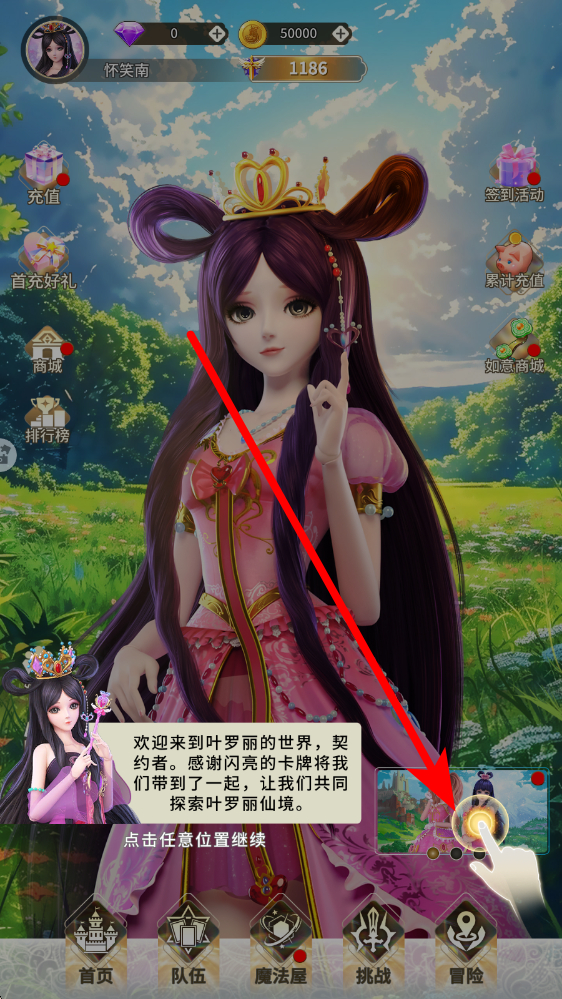 1、进入游戏界面,选新的服务器或梦幻服,点进入游戏,创建角色后,在欢迎页按指引点击任意位置,开启叶罗丽仙境探索之旅。