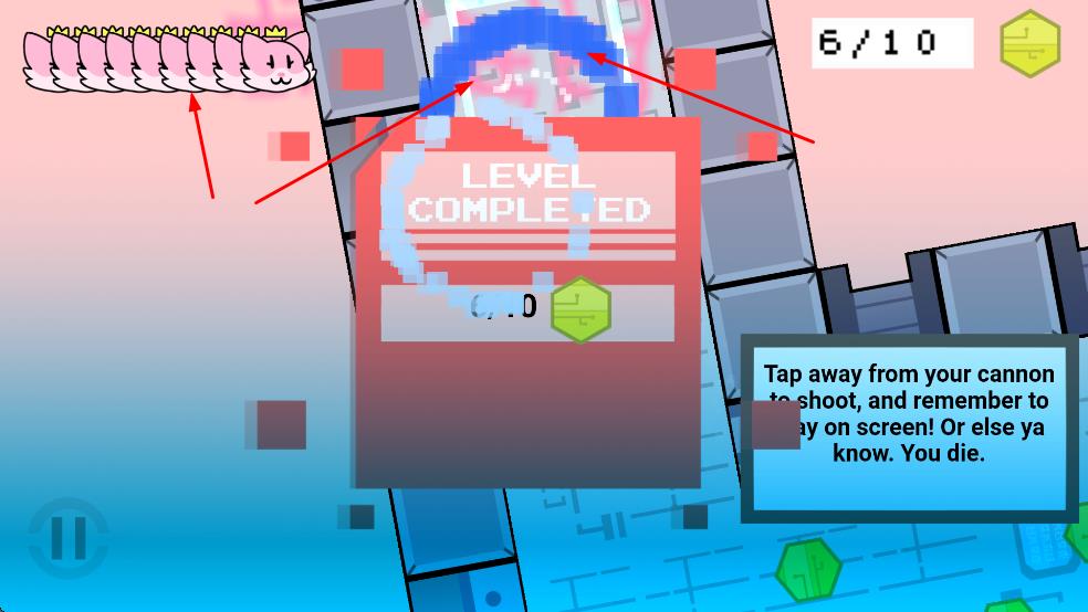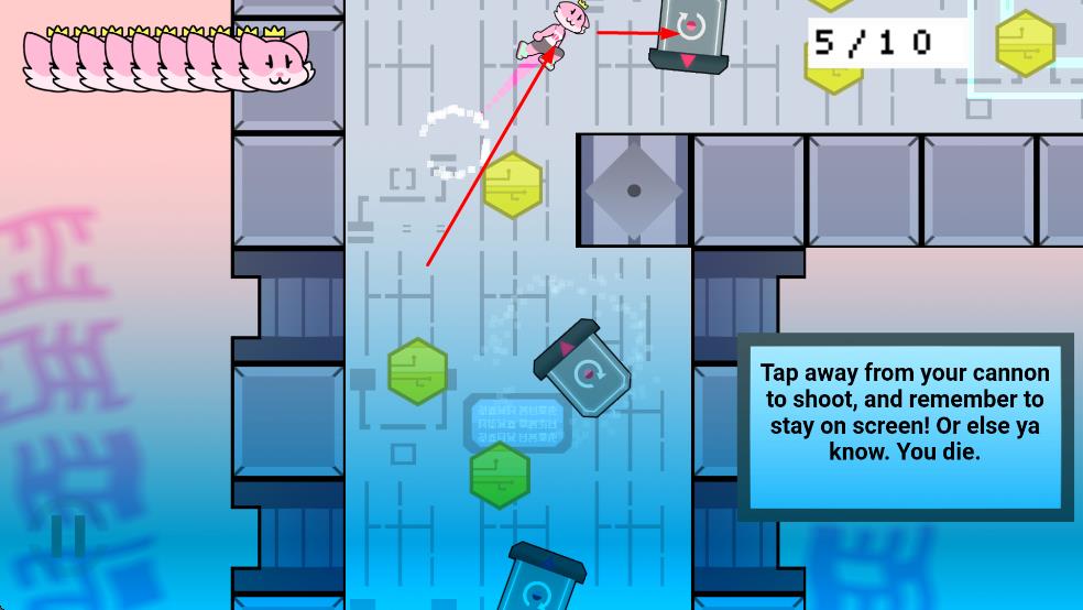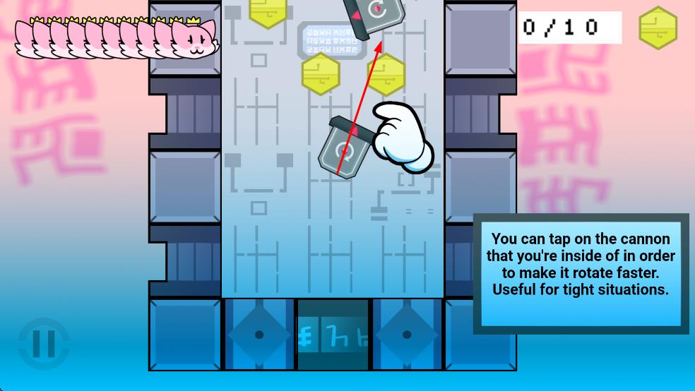 1、点击炮台旋转调整角度,朝远离炮台方向点击,发射粉色角色,开启六边形收集挑战。