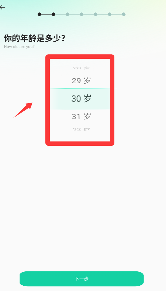 3、你的年龄是多少?红色框框那里可以滚动选多少岁。