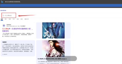 2、点击红框搜索框,输入凡人修仙传关键词。